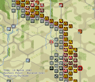 The northern attack is still struggling mightily to break through the Nazi line. I'm running short on reserves to send into this sector, as all available armies are being moved to the Orel sector.